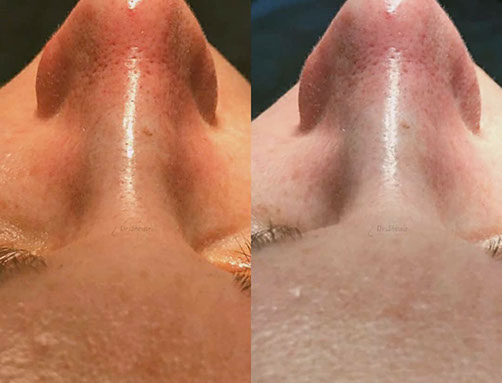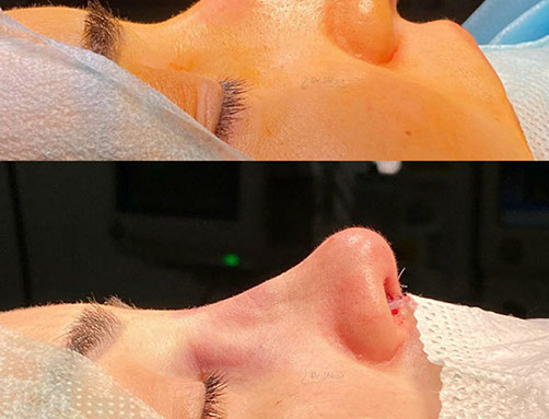 Let down - эта технология сохраняет естественную спинку носа, нет разрушения костей, хрящей, надкостницы и слизистой оболочки носа. Горбинка уходит вниз одним нажатием после манипуляций с перегородкой носа закрытым методом. Слизистая также остается неповрежденной, проблем с дыханием не возникает.