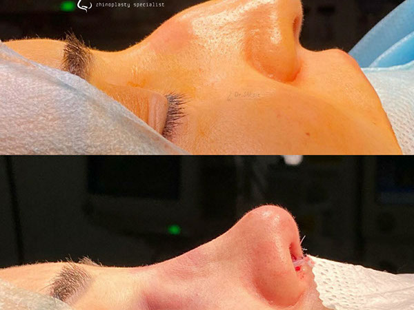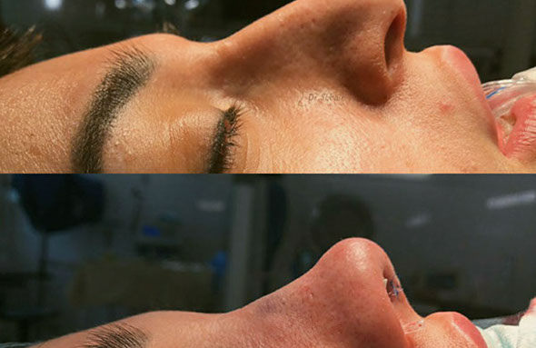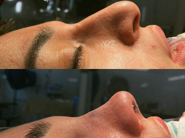 Let down - эта технология сохраняет естественную спинку носа, нет разрушения костей, хрящей, надкостницы и слизистой оболочки носа. Горбинка уходит вниз одним нажатием после манипуляций с перегородкой носа закрытым методом. Слизистая также остается неповрежденной, проблем с дыханием не возникает.